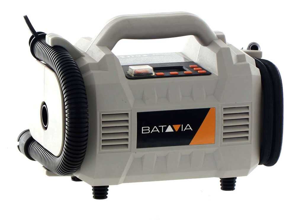 Découvrez le compresseur à batterie portatif 18 V Batavia avec batterie 2.0 Ah et chargeur pour un gonflage facile et rapide.