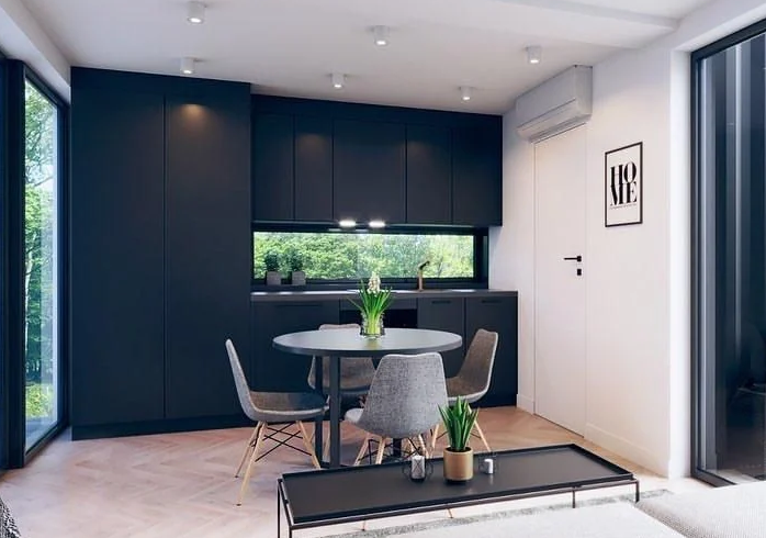 Aménagement : Chambre, salon, cuisine équipée, salle de bain complète